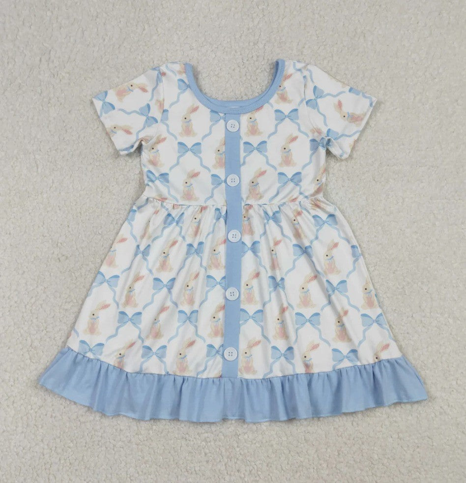 Hop into spring style with this adorable Blue Bow Bunny Dress! Perfect for Easter celebrations and warm-weather adventures, this playful piece features a charming bunny design and sweet blue bow detail that'll have little ones hopping with joy. Lightweight and comfortable for all-day wear, it's an egg-stra special addition to any spring wardrobe. Ideal for photos, parties, and making memories this season!