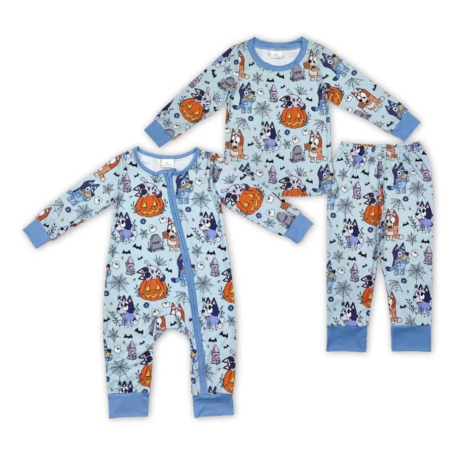 Get ready for a spooky good night's sleep with the Blue Dog Halloween Pajama Zippie Set! Featuring a fun blue dog design perfect for Halloween festivities, this cozy zippie keeps kids comfy and warm all night long. Easy to zip on and off, it’s ideal for little ones who love festive fun and want to stay snug during chilly autumn evenings. Make bedtime a playful adventure with this adorable pajama set!