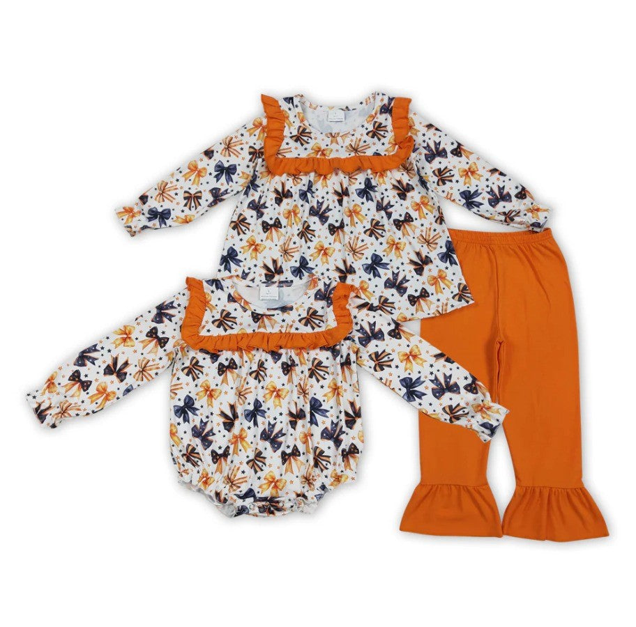 Dress your little ones in cozy charm with the Fall Bow Set Bubble Romper Sibling Set. Perfect for playful days and crisp autumn adventures, this adorable set features soft, comfortable fabric and sweet bow details that add a touch of whimsy. Designed for siblings to match in style and comfort, it’s an easy way to create picture-perfect moments while keeping the kids comfy and cute all season long.