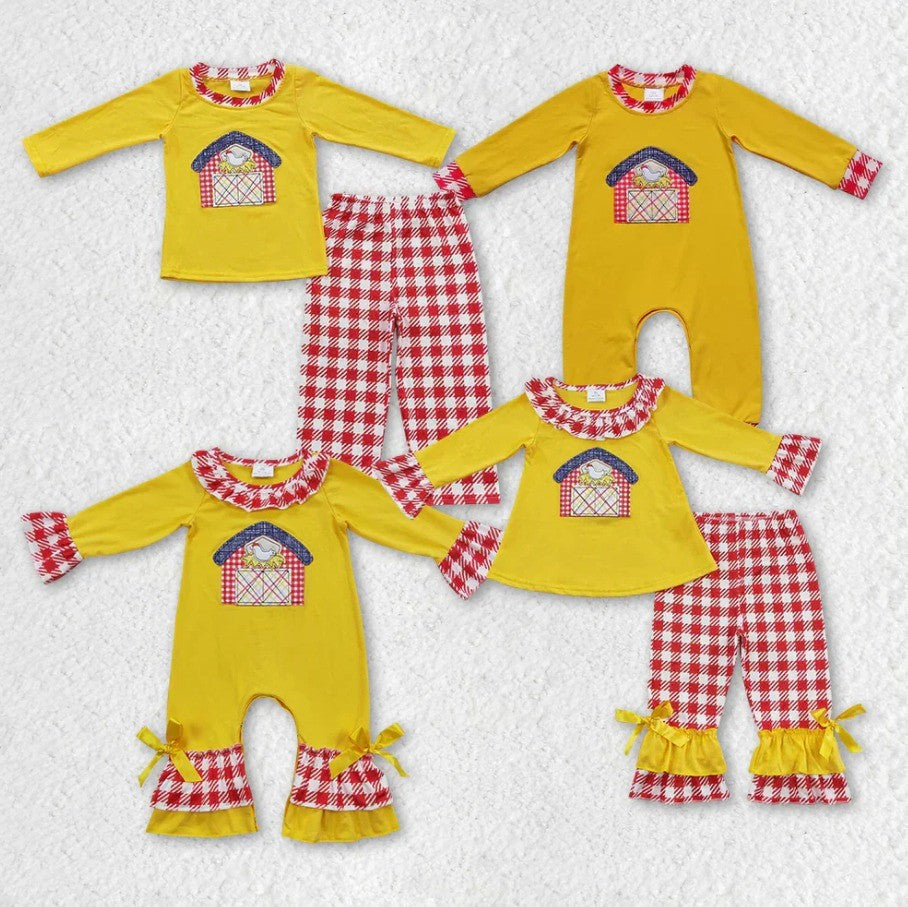 Dress your little ones in the Farm Chicken Sibling Set Collection, where cozy comfort meets adorable farmyard fun. Perfect for siblings who love to match, these playful outfits bring a touch of countryside charm to everyday adventures. Soft fabrics and cute chicken-themed designs make getting dressed a joyful experience for kids and parents alike.