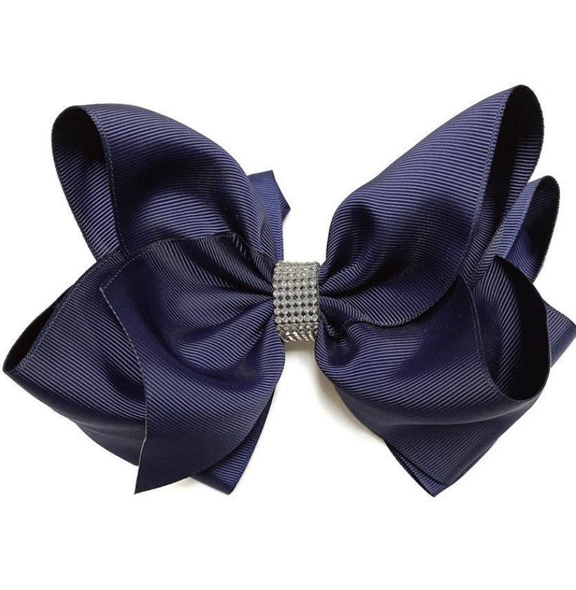 Navy Blue 6.5 Inch Rhinestone Bow